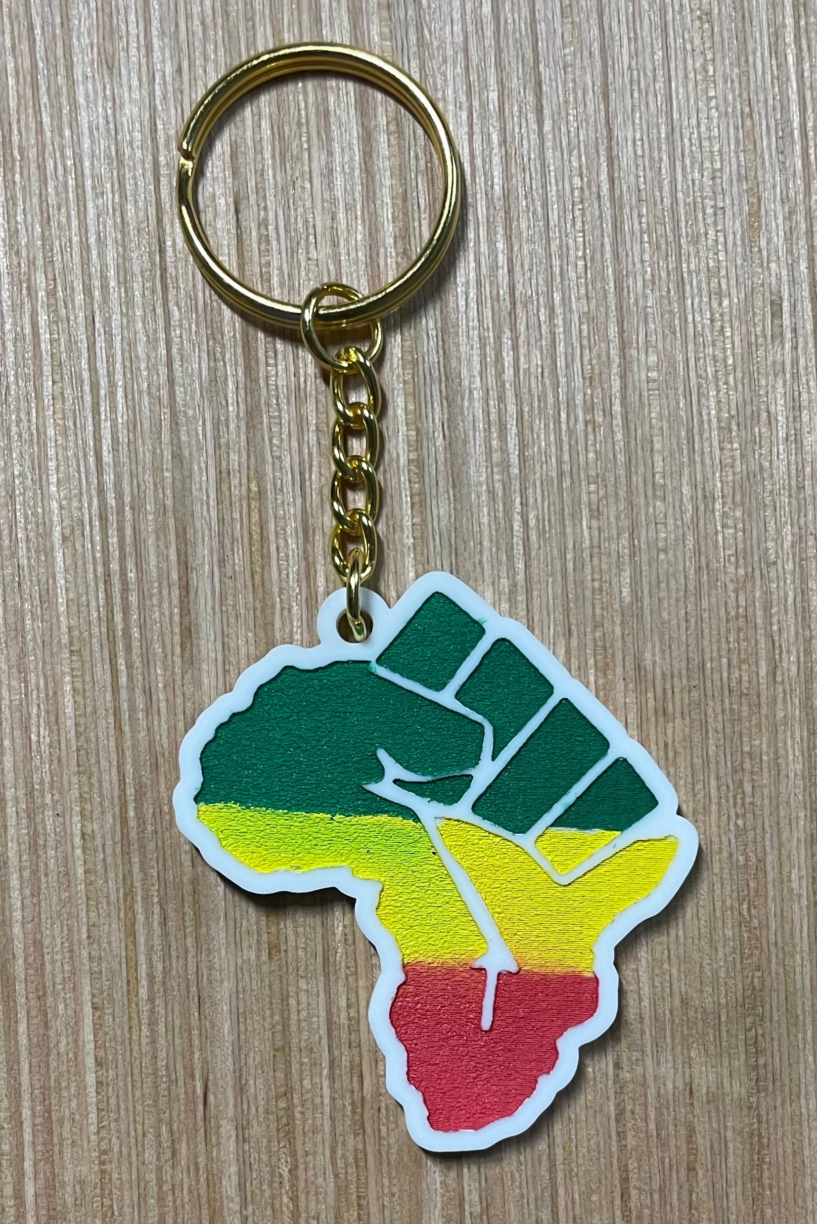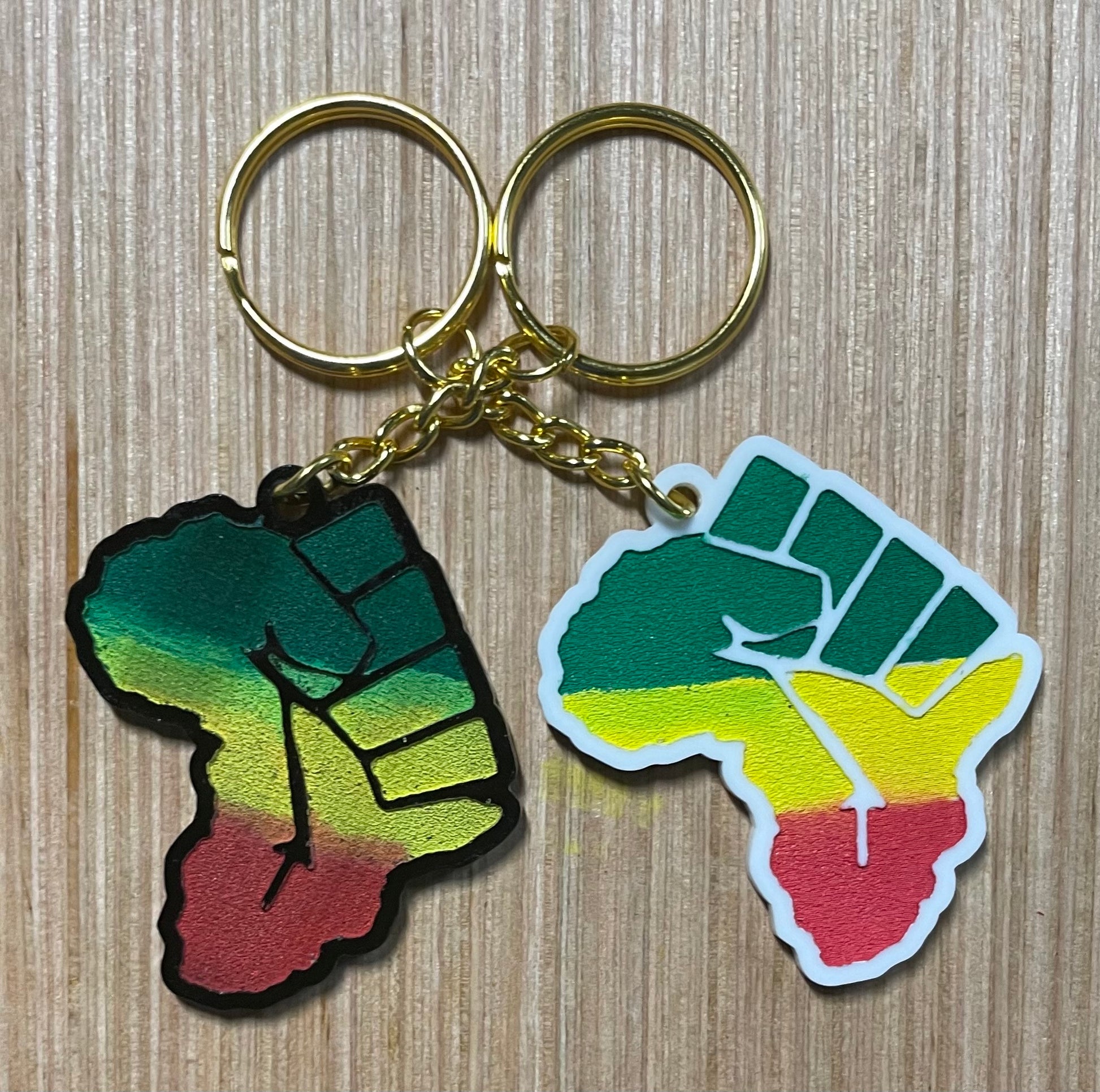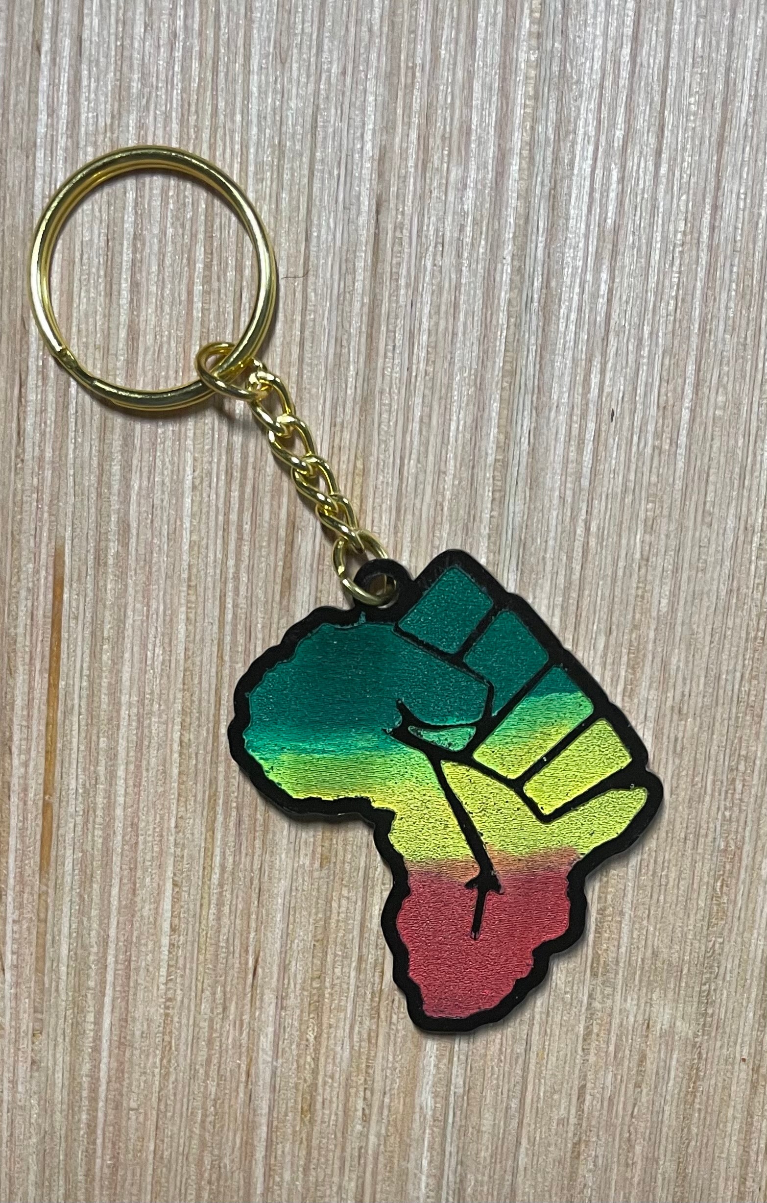 Acrylic engraved hand painted African Pride keychains. Comes in 2 inches, 3 inches, or 4 inches tall.