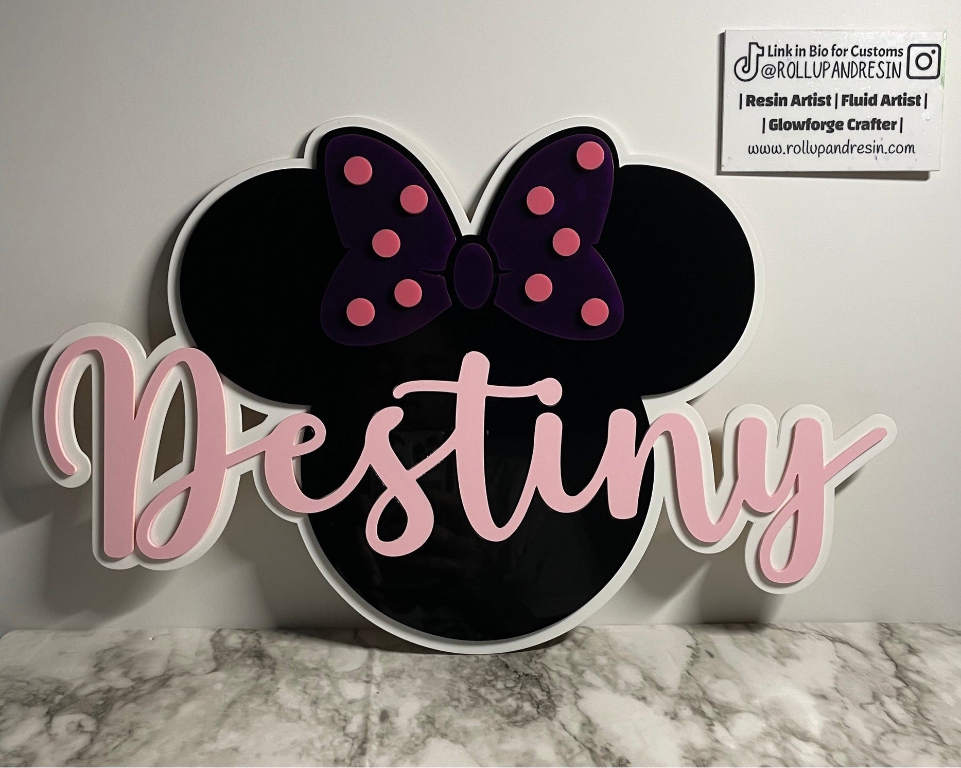 Signs are made of full acrylic/acrylic and wood combo depending on character requested and are typically about 11-12” wide but could vary based on character.
