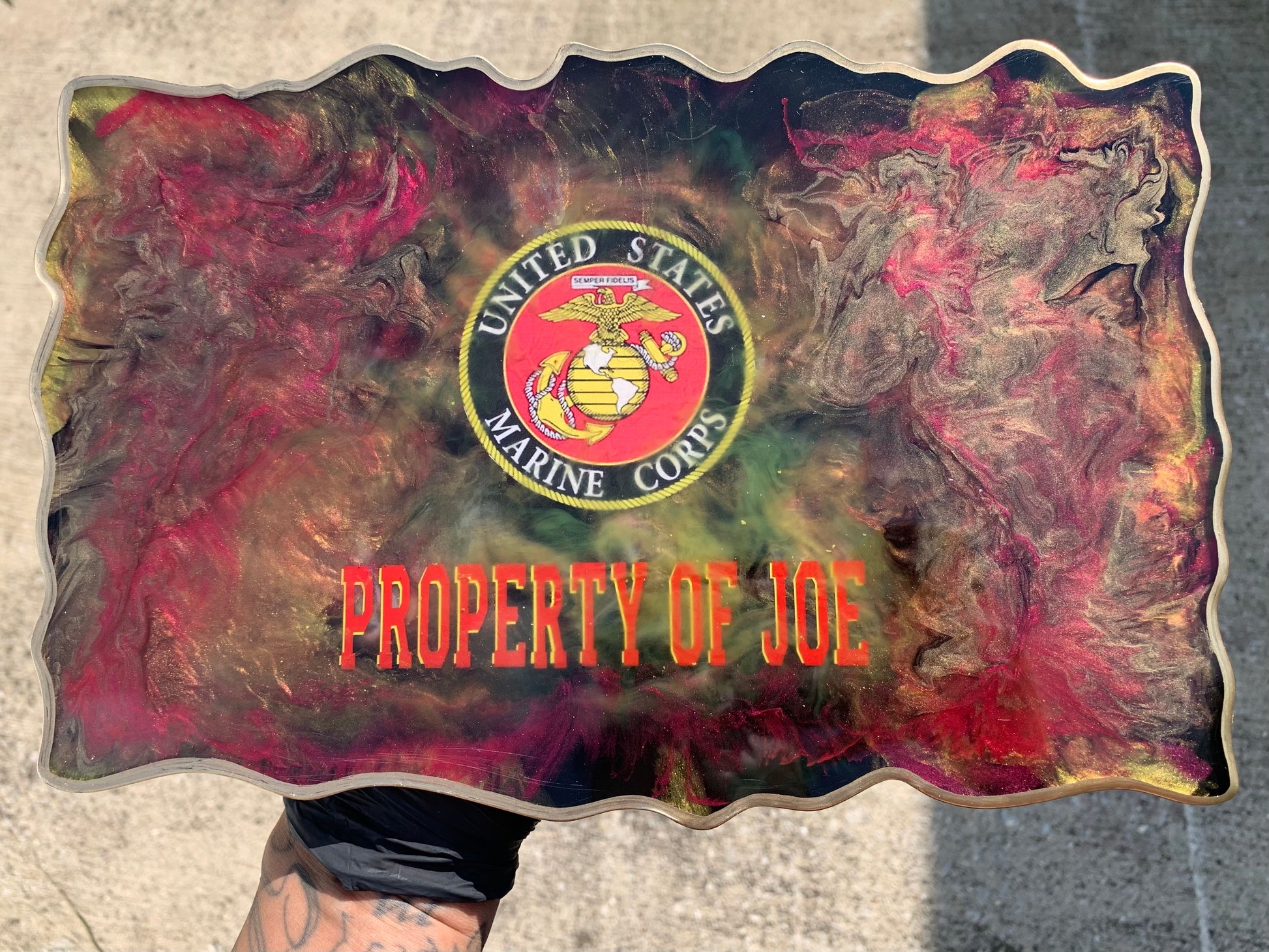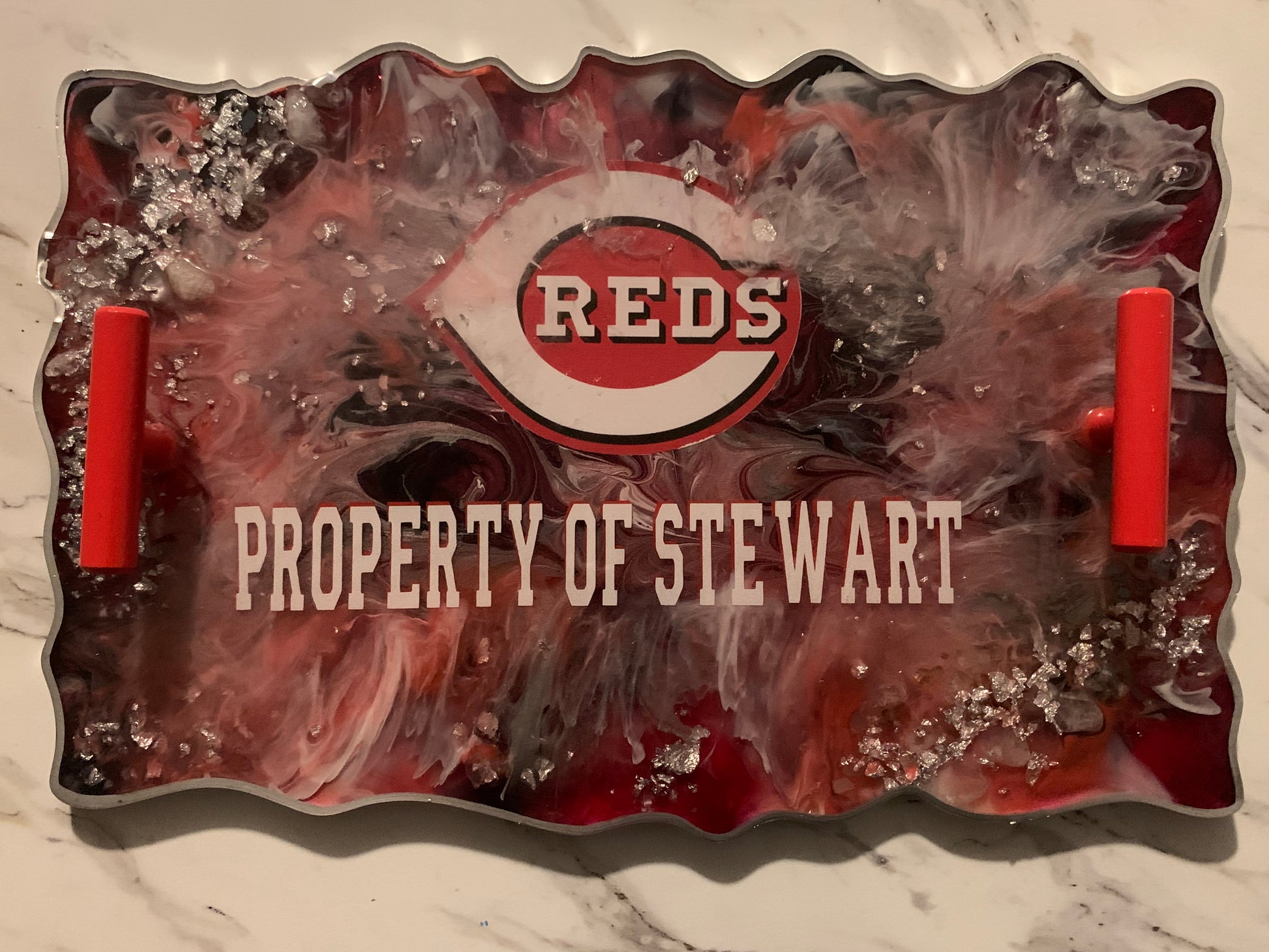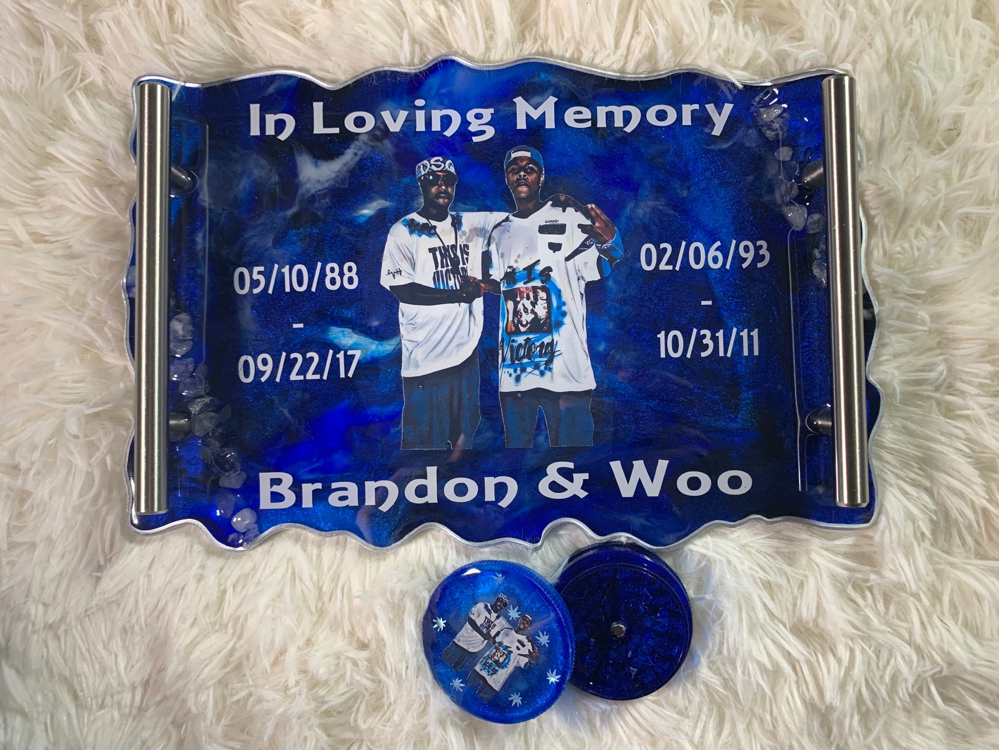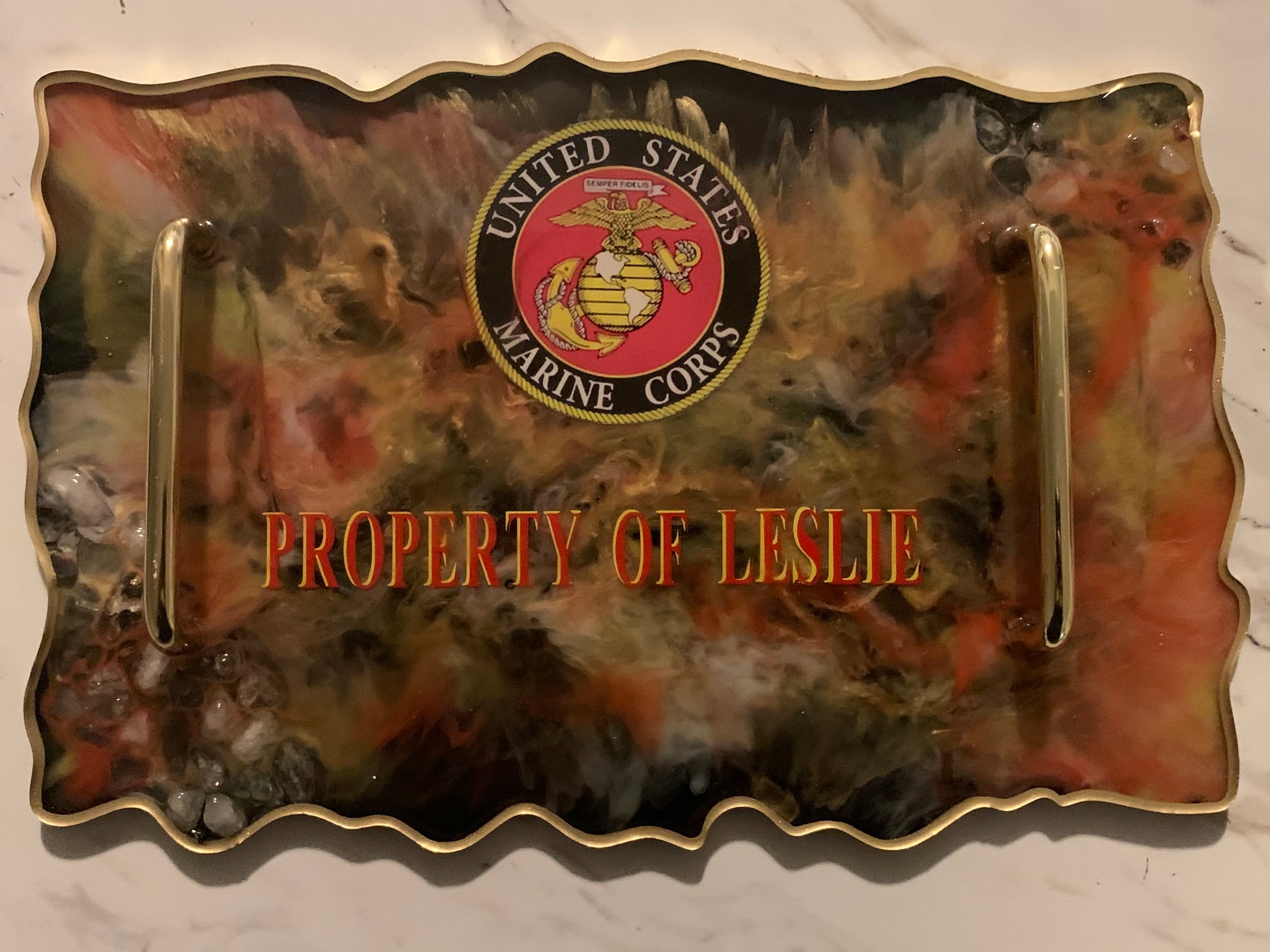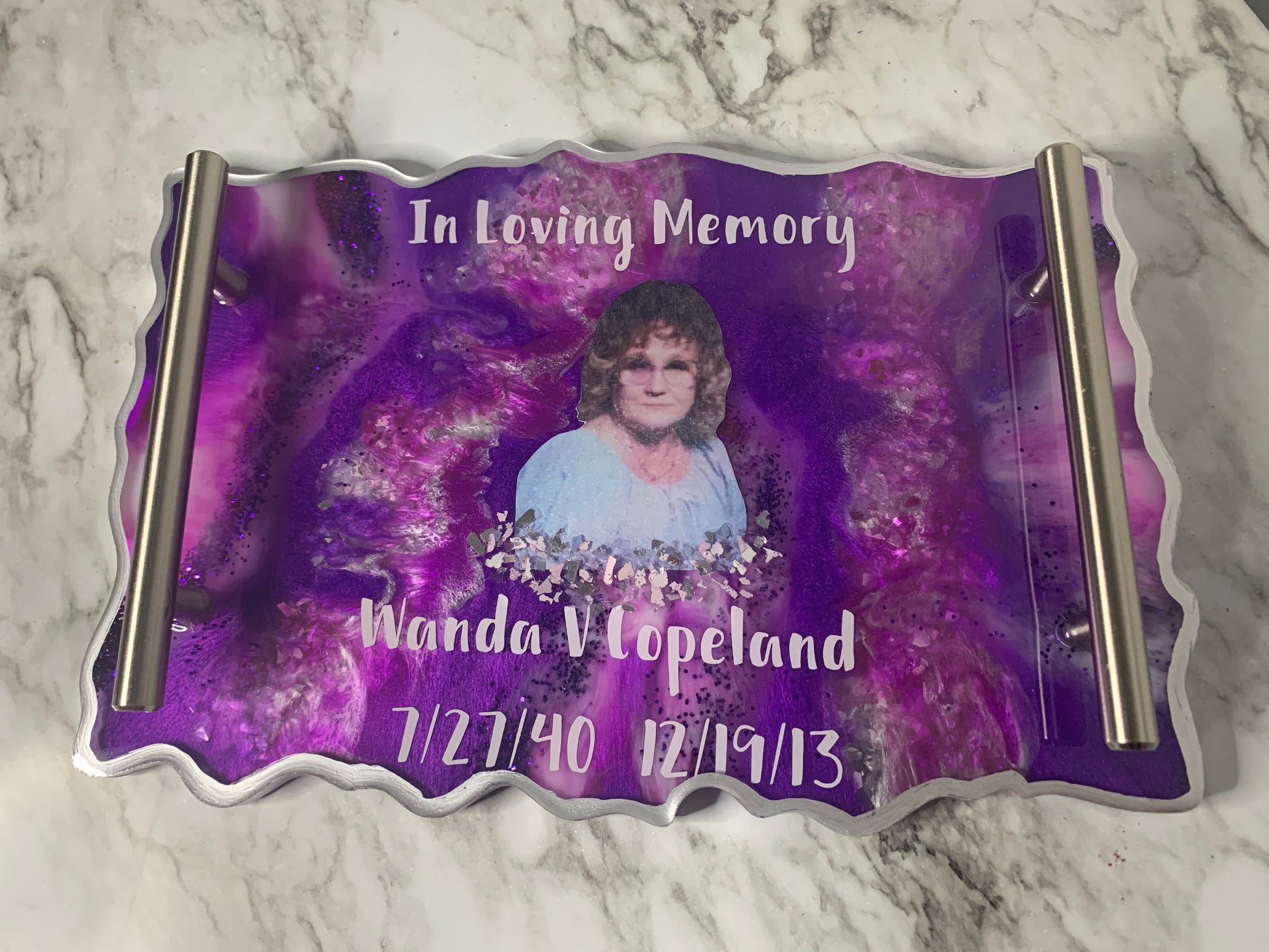 This piece is customizable and comes as either a plaque (no handles) or as a tray (with handles).
