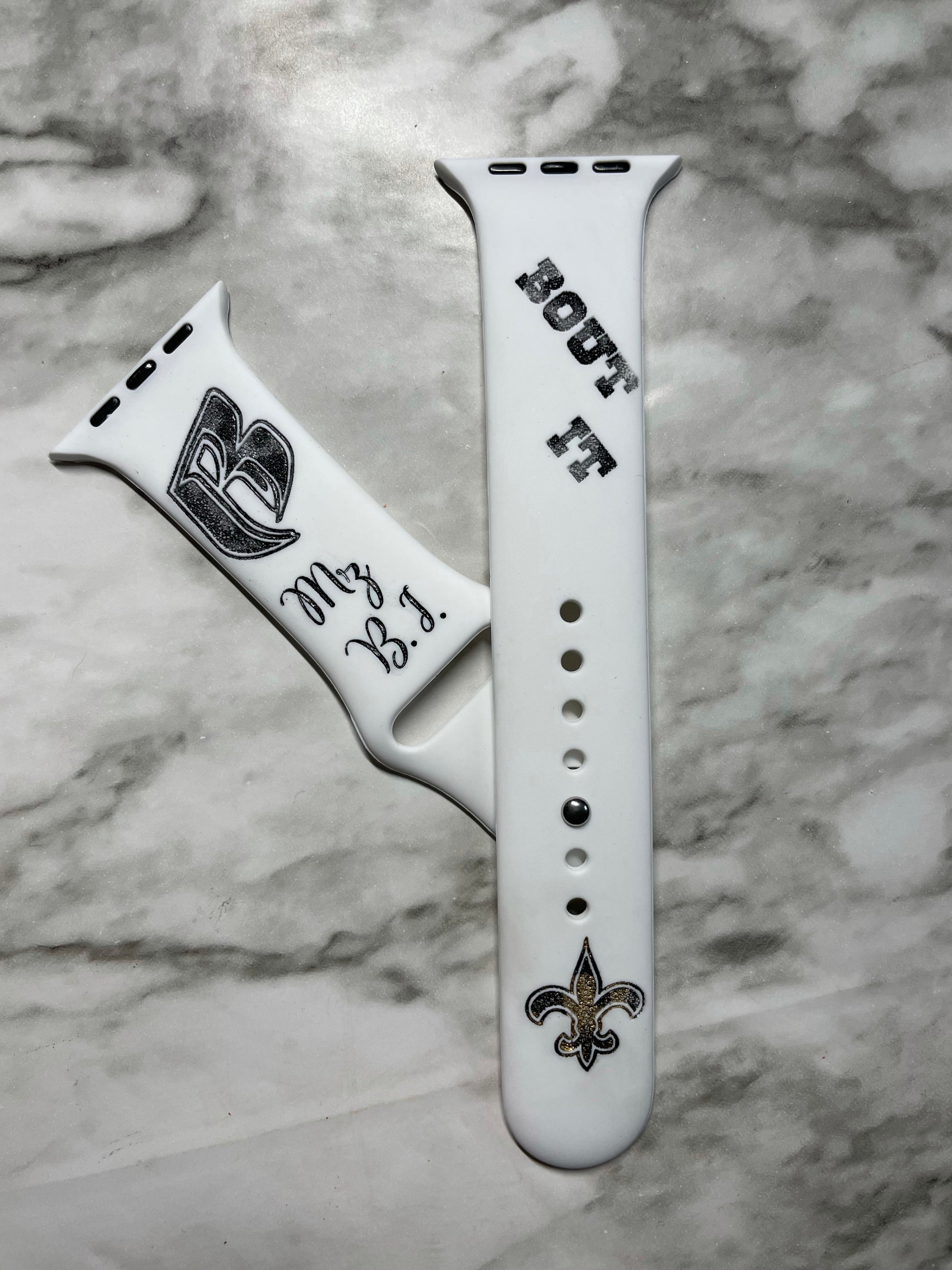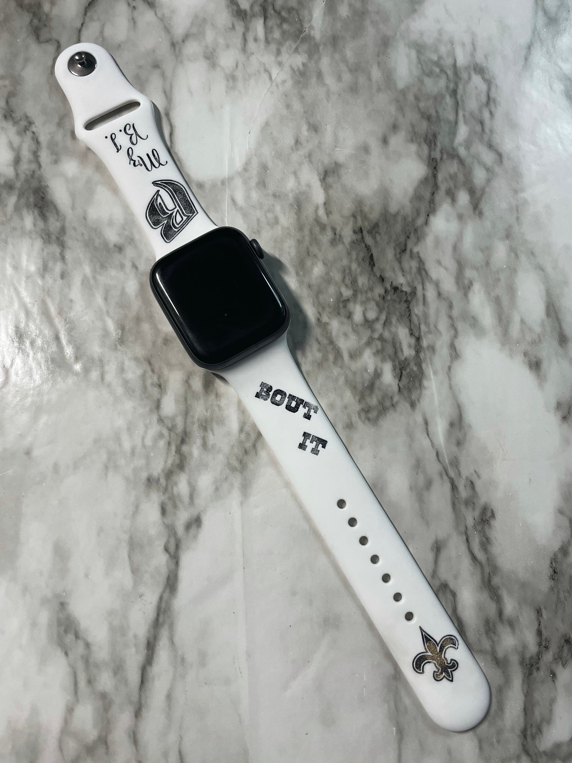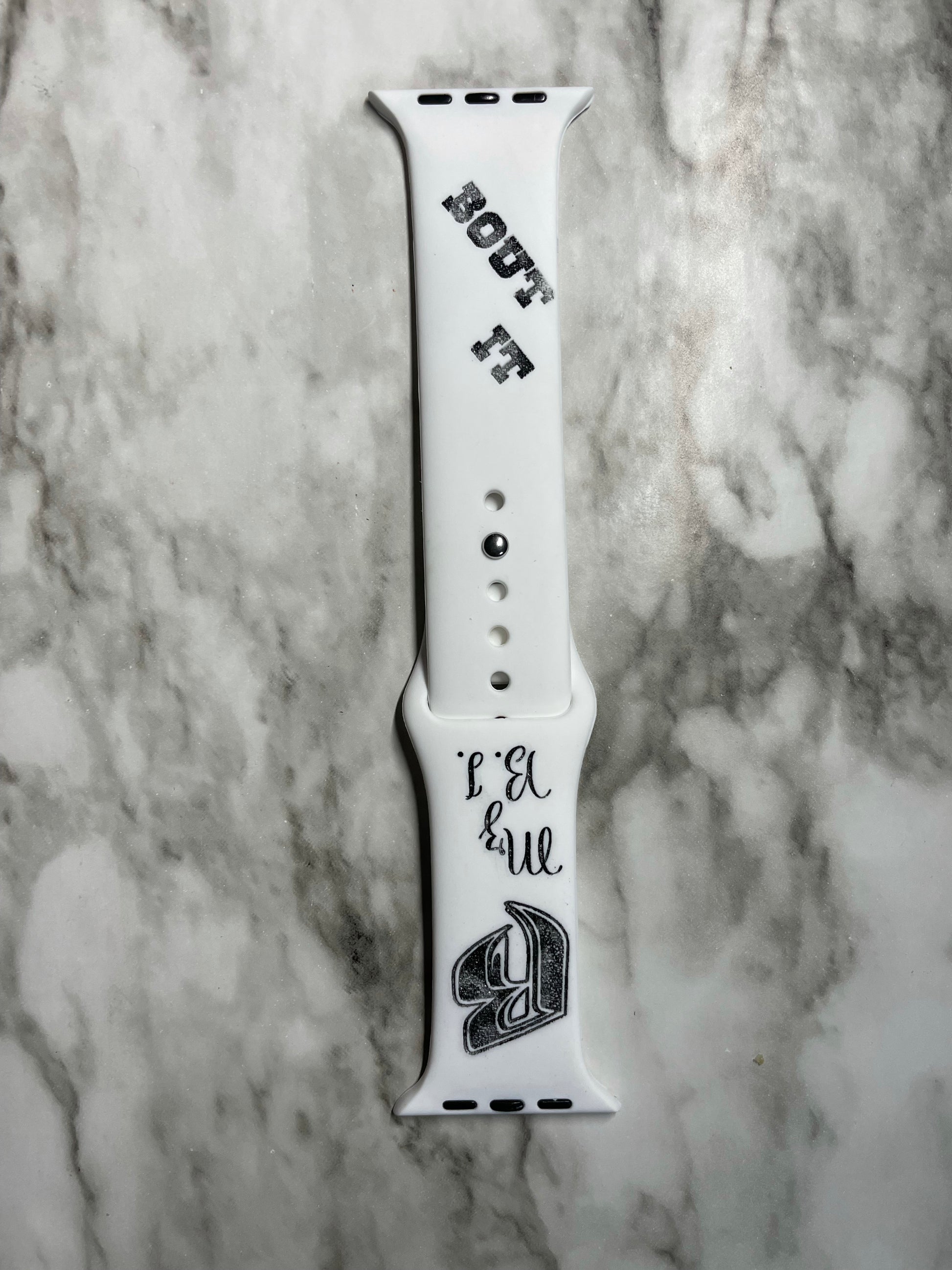 44mm white custom engraved silicone watch band